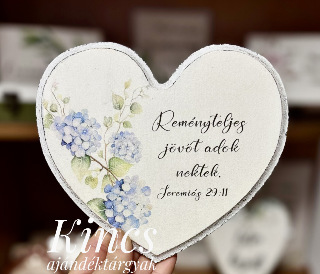 Kézzel díszített Igés,falra akasztható kép, mart szélű szív alakú , festett fa alapra.