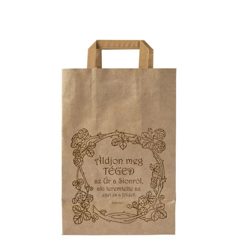 Elegáns és környezetbarát dísztáska. Egyszínű, elegáns tejeskávé barna, matt, szalagfüles. (méret: 22 x 28cm)